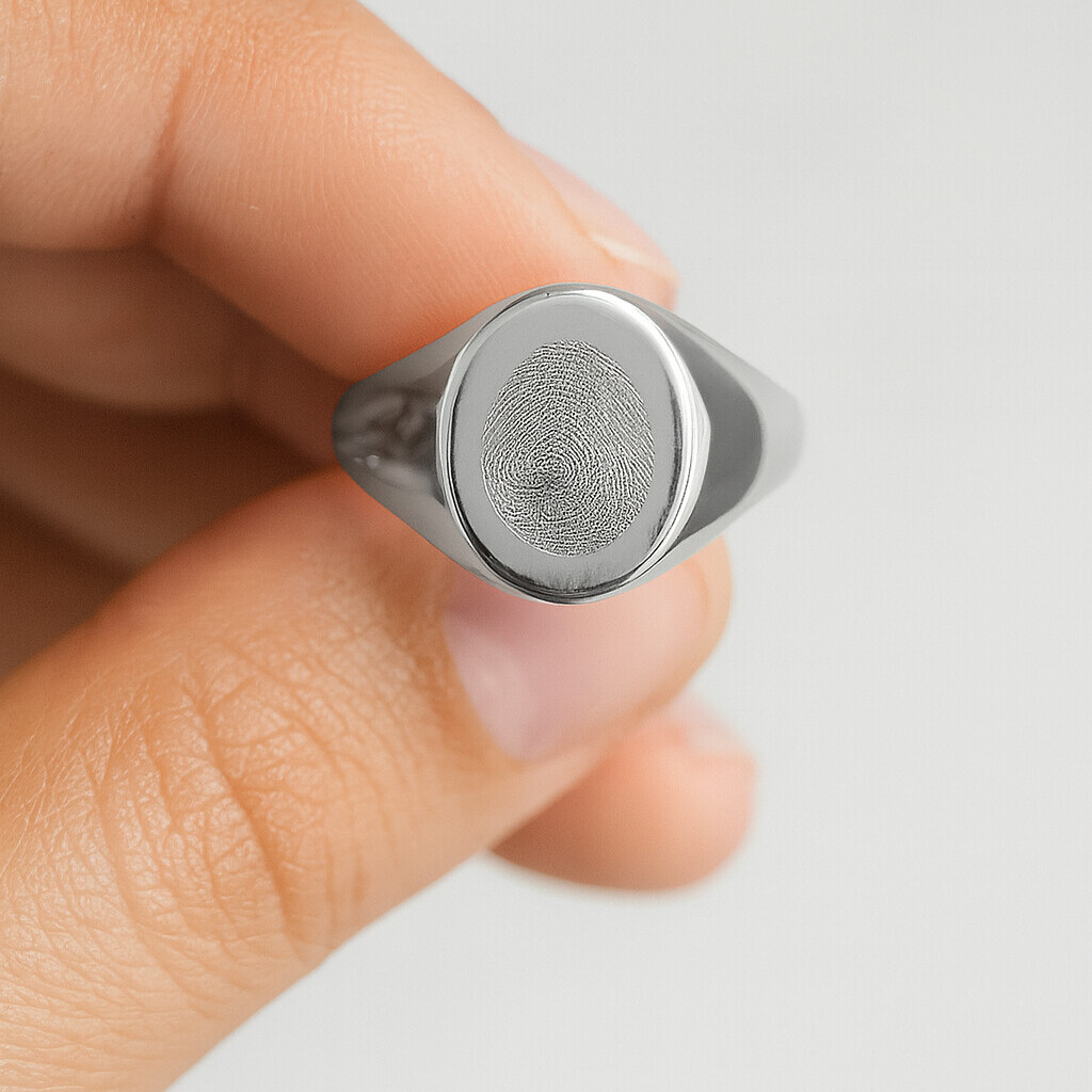 Einer der wertvollsten Ringe in silber, gold oder rose mit Fingerabdruck eines geliebten Menschen für die ewige Erinnerung
