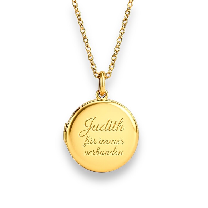 Im Inneren des Medaillons findet sich Raum für zwei persönliche Fotos oder eine individuelle Gravur – zum Beispiel ein bedeutungsvolles Datum, ein Name, ein handgeschriebener Satz oder eine kurze Widmung. Auch der Rückseite kann ein persönlicher Schriftzug oder eine Botschaft verewigt werden.