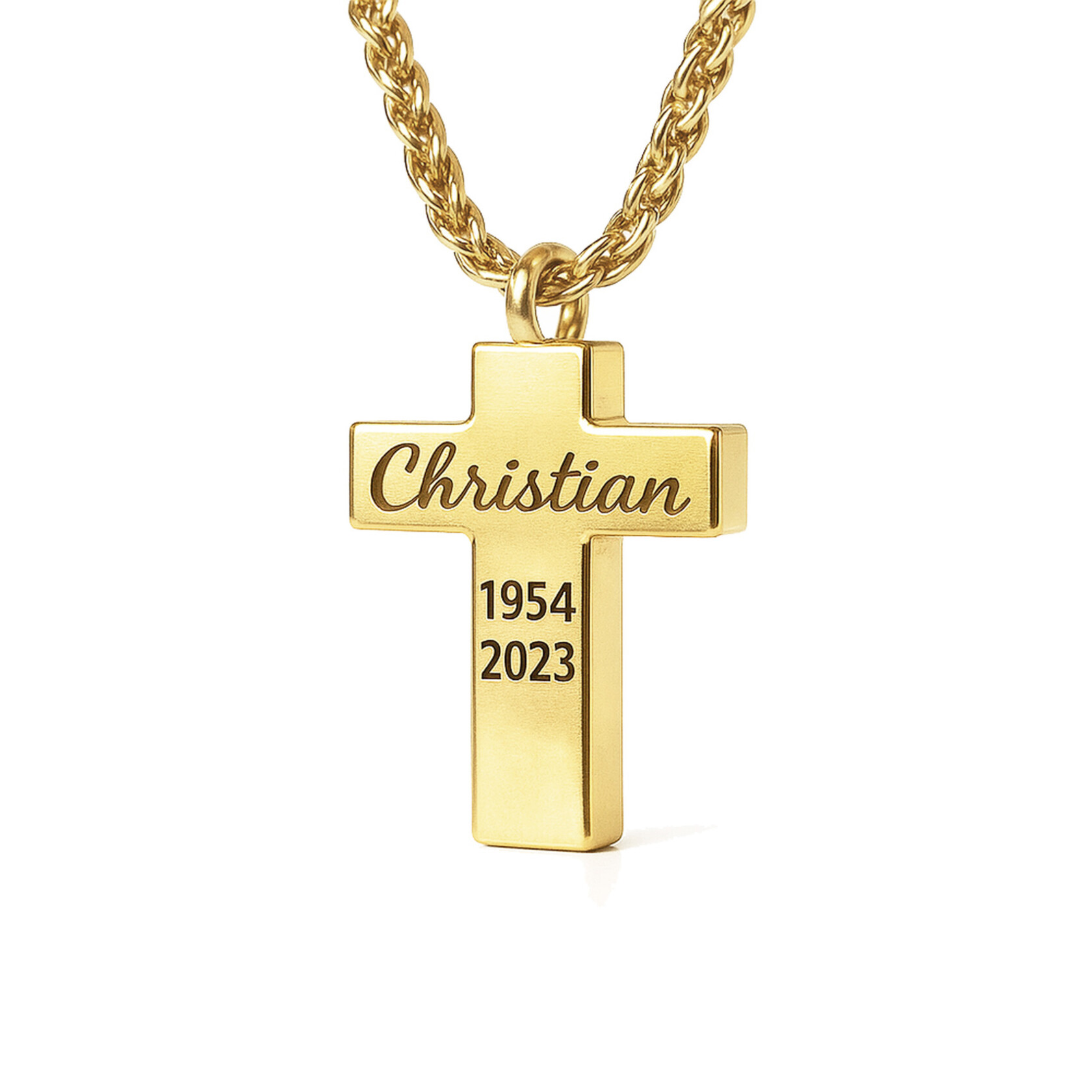 Durch eine individuelle Gravur lässt sich das Schmuckstück zusätzlich personalisieren – sei es mit einem Namen, einem besonderen Datum oder einem kurzen Wort, das alles sagt. Die Kreuzkette mit Füllung ist ein stilvoller, zeitloser Begleiter, der Erinnerungen sicher bewahrt und auf behutsame Weise spürbar macht, was für immer bleibt.