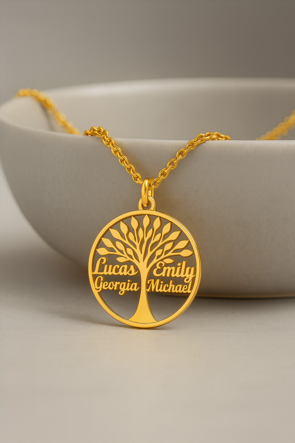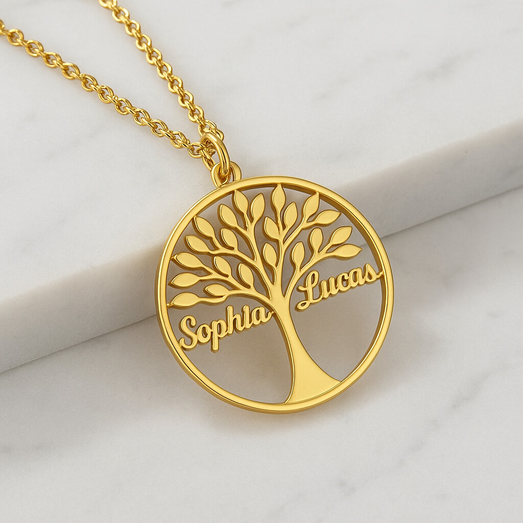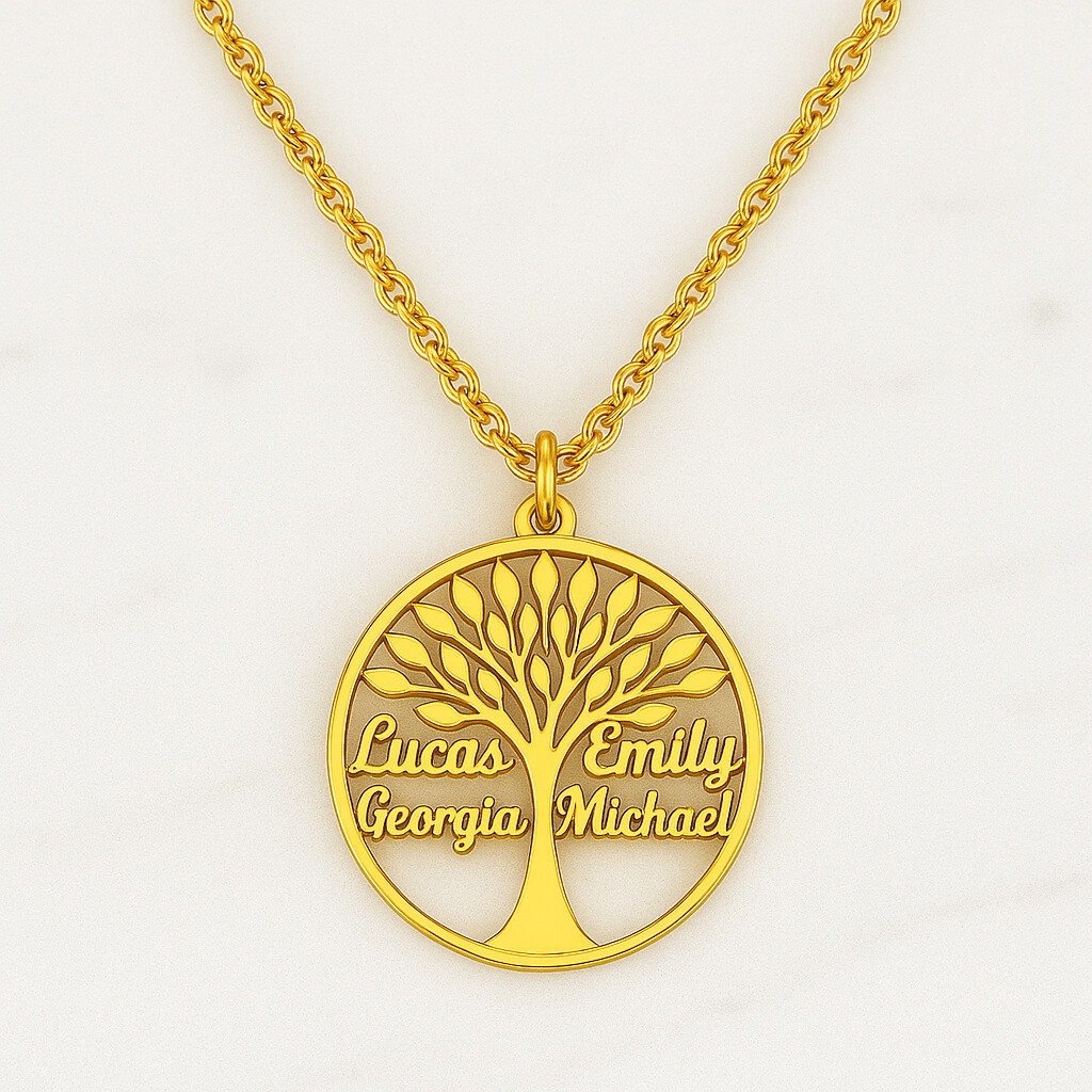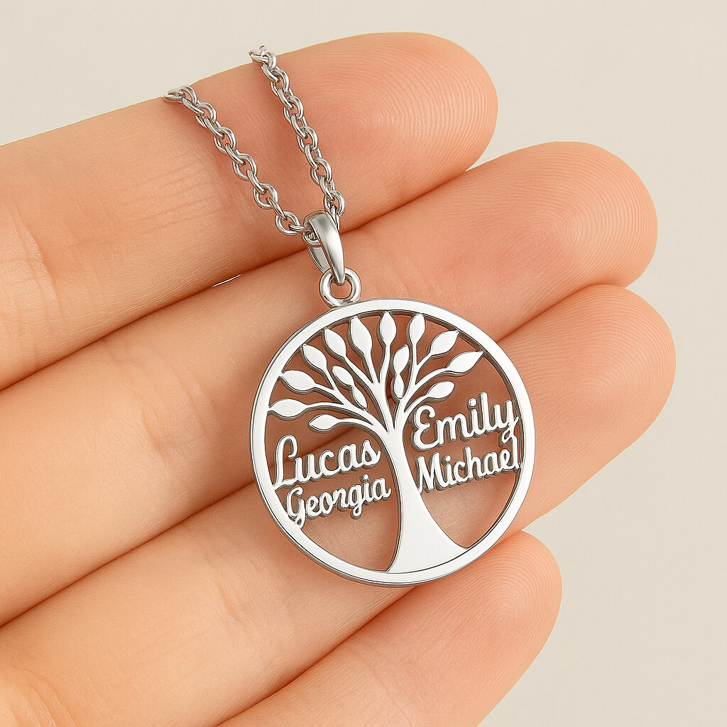 Der Lebensbaum steht für Wachstum, Kraft und die unzertrennliche Verbindung zu den Menschen, die unser Herz berühren. Dieses einzigartige Schmuckstück wird mit Namen individuell gestaltet – jeder Name symbolisiert einen geliebten Menschen und erzählt seine ganz eigene Geschichte und vebindet dies mit Erinnerungen.