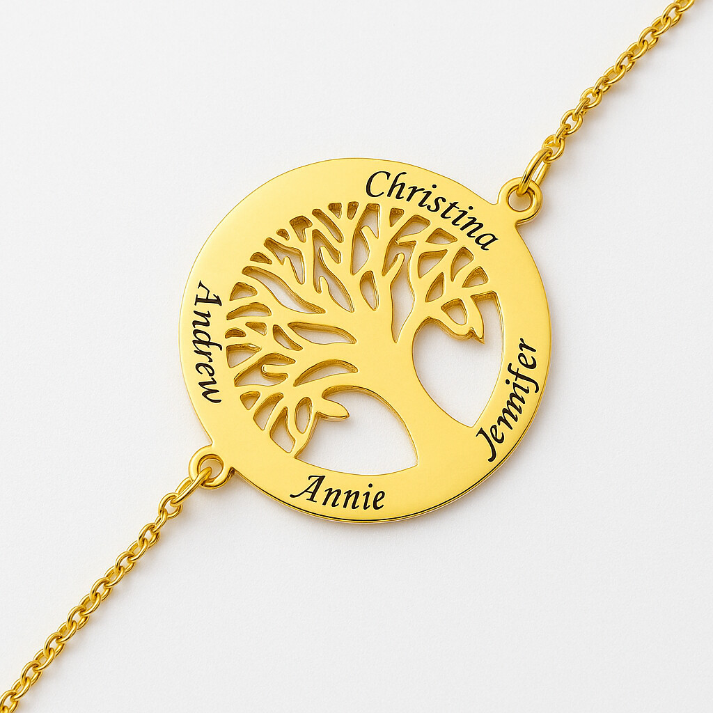 Das Lebensbaum-Armband verbindet symbolische Bedeutung mit individueller Gestaltung – wähle Namen, Worte oder eine besondere Botschaft als Gravur, um deine persönlichen Erinnerungen festzuhalten. Ein einzigartiges Schmuckstück, das Verbundenheit und Liebe stilvoll zum Ausdruck bringt.