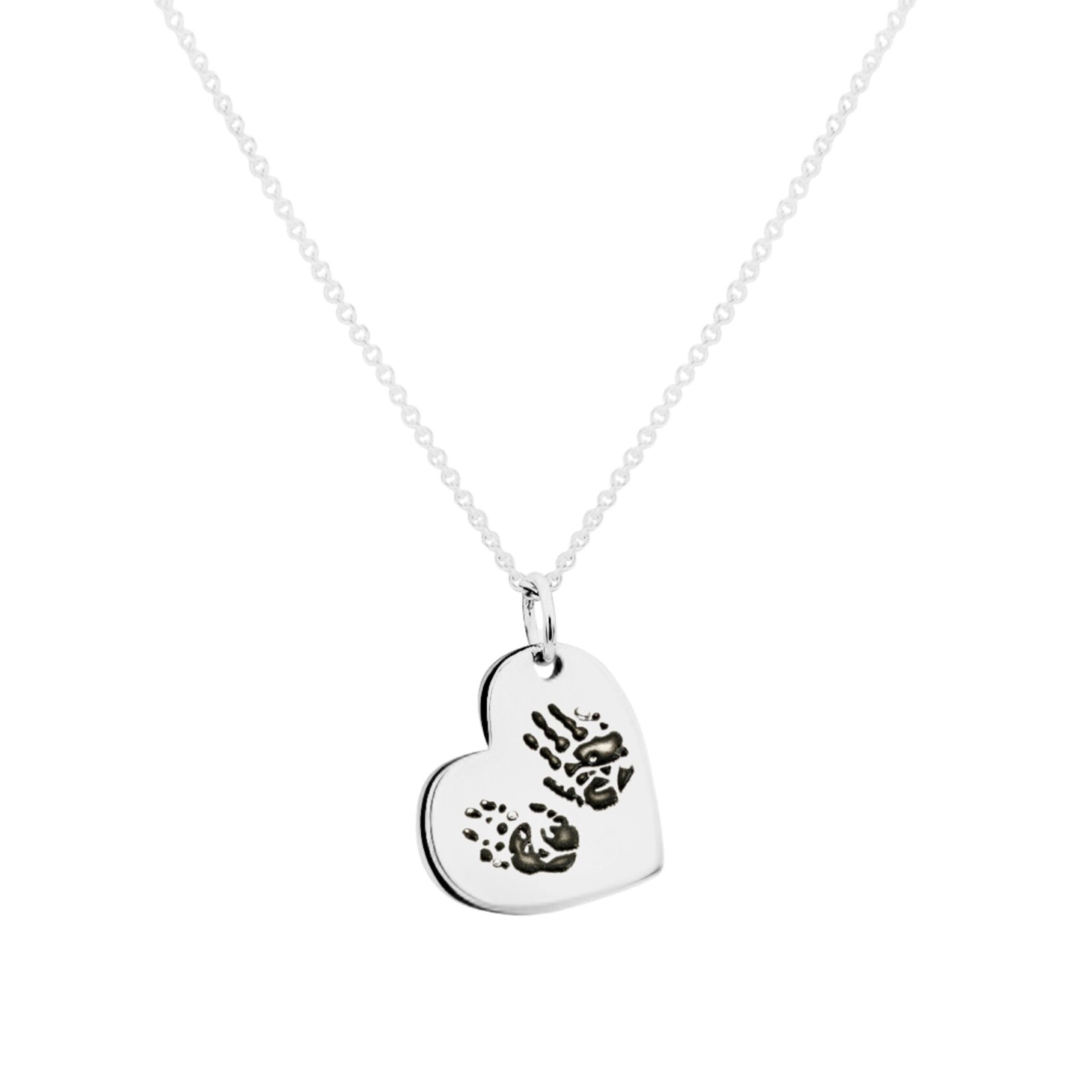 HERZSTÜCK – Herzkette mit zwei Gravuren Original 3D Hand und Fussabdruck