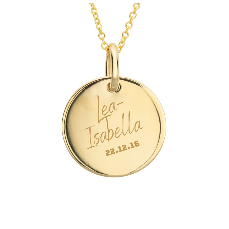 MEMENTO Textgravur – Runder Anhänger mit standard Textgravur, Original Gravur einer Unterschrift oder Handschrift