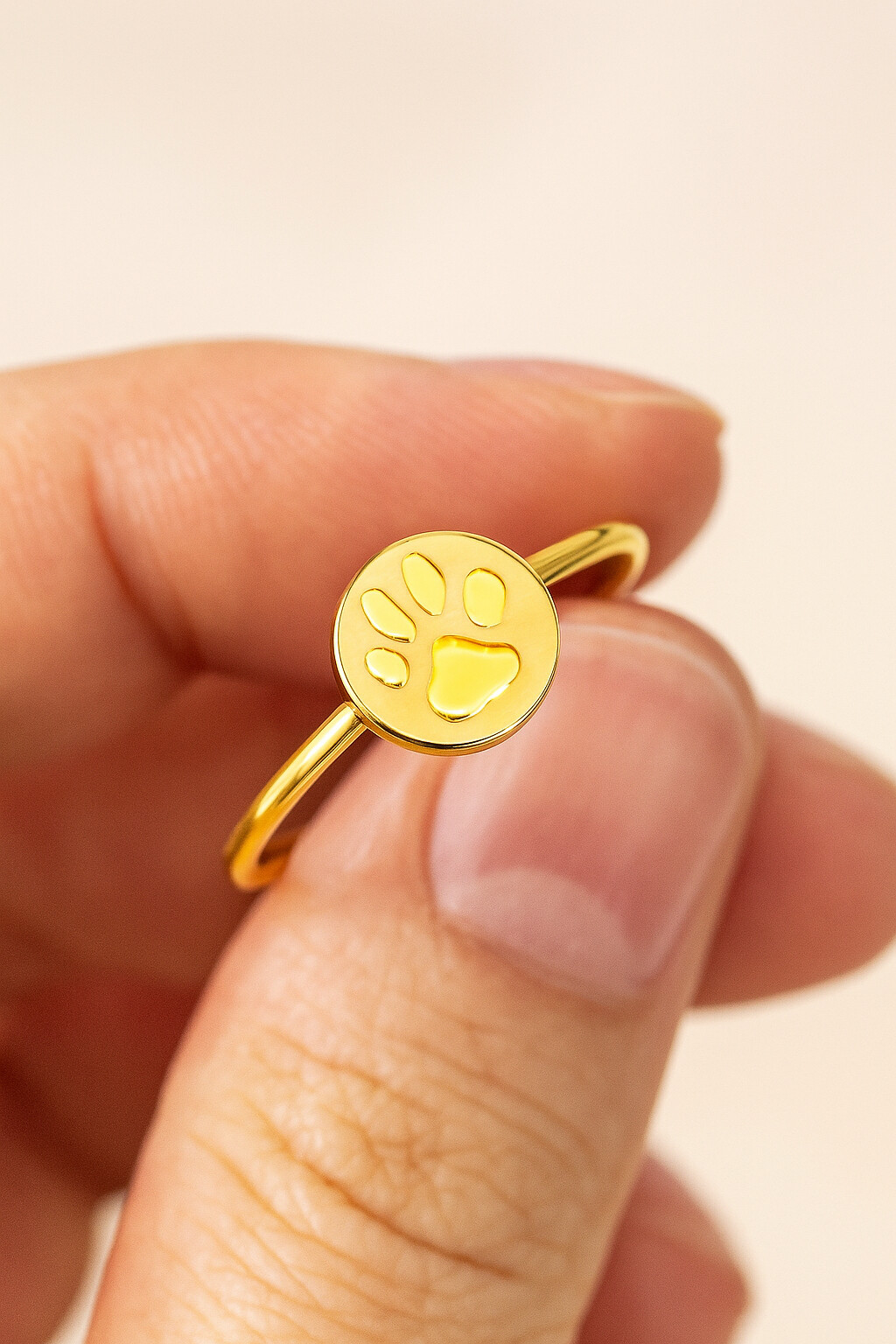 Ob als Erinnerungsschmuck an einen treuen Freund oder als Trauerschmuck für ein geliebtes Tier, dieser Ring trägt den detailgetreuen Pfotenabdruck deines Lieblings direkt auf der Oberfläche. Zusätzlich kannst du ihn mit einem Namen, Datum oder einer persönlichen Botschaft gravieren lassen – für ein einzigartiges Andenken, das dich täglich begleitet.