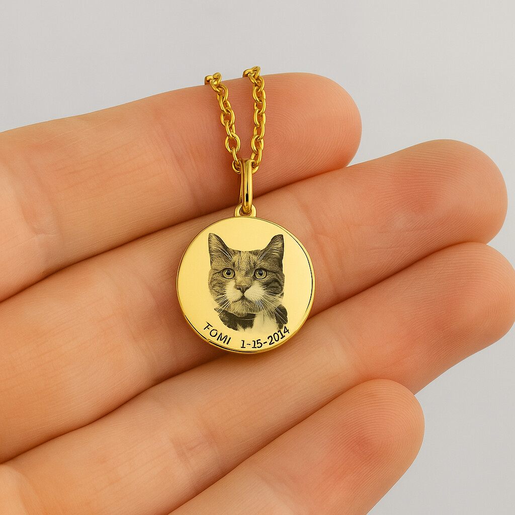 Ob als Erinnerungsschmuck, Trauerschmuck oder Zeichen ewiger Treue, dieses einzigartige Schmuckstück hält das Gesicht deines Lieblings für die Ewigkeit fest. Sanft graviert oder als filigranes Bild – es ist ein liebevoller Begleiter, der die schönsten Momente bewahrt.