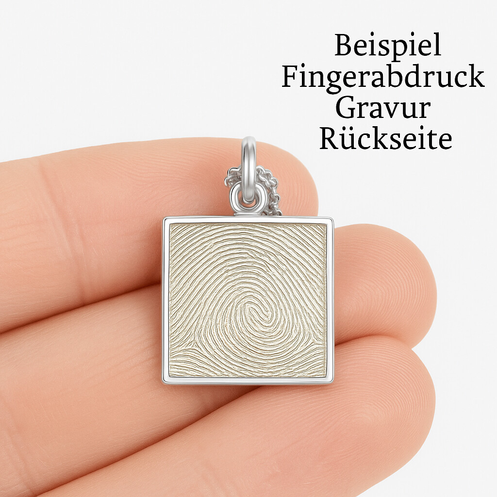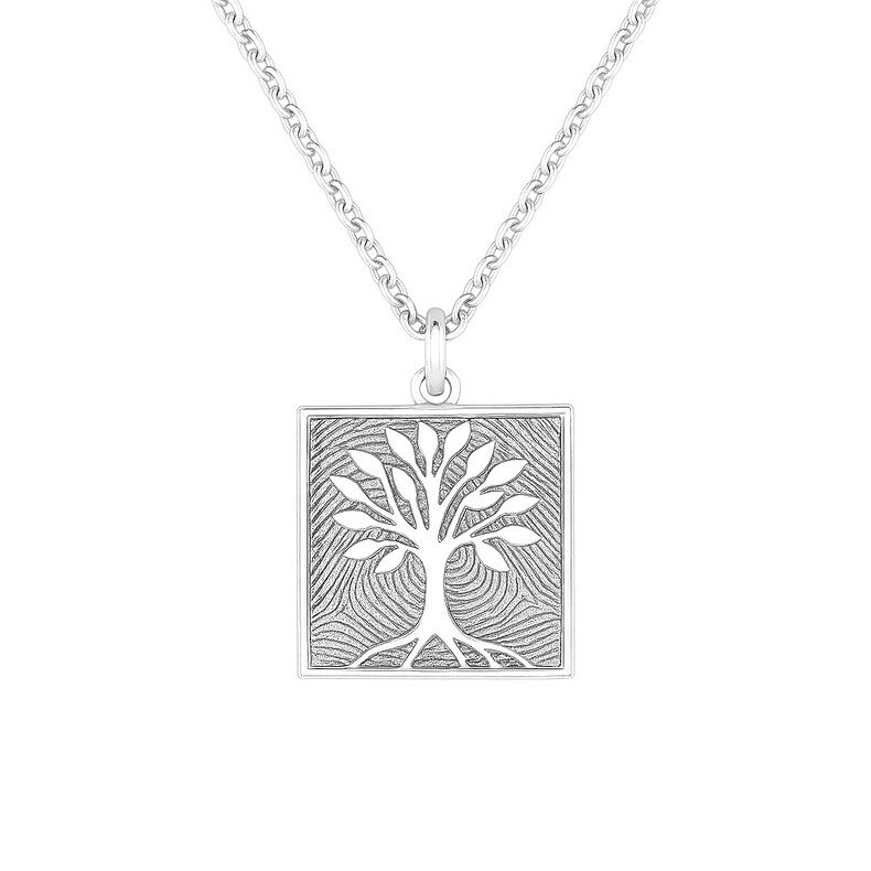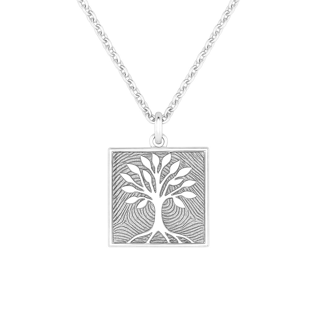 WURZELN & FLÜGEL Lebensbaumschmuck – Cutout Kette quadratisch mit Fingerabdruck Gravur